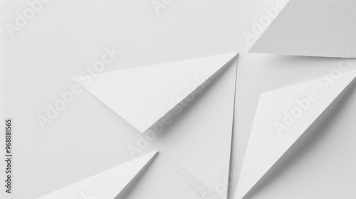 A minimalist composition featuring white paper triangles arranged on a light background.