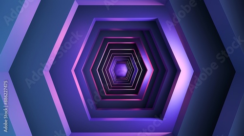 A minimalist dark blue hexagonal backdrop with a radiant violet center, highlighted by a smooth 3D rendering