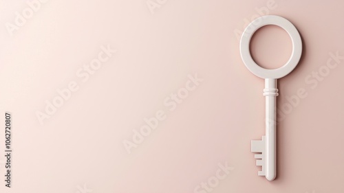 A minimalist design featuring a white key against a soft pink background, symbolizing access and security.