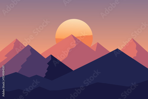 mountain, minimalist, vector, illustration, nature, snow, sunrise, wilderness, tranquil, adventure, peaceful, silhouette, sunset, outdoors, pastel, environment, calmness, aesthetic, abstract, hill, horizon, desert, festival, panorama
