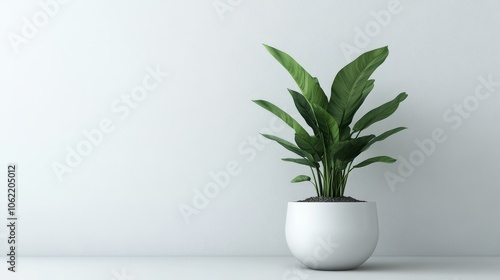 A minimalist house plant in a modern white pot placed against a plain wall