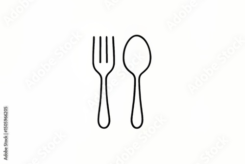 A minimalist illustration of a fork and spoon side by side on a plain white background design style