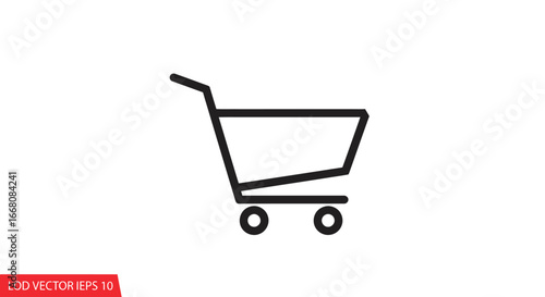 A minimalist linear icon representing a shopping cart or trolley, symbolizing online retail, e-commerce activities, and adding items to a digital basket for purchase, isolated on a clean background