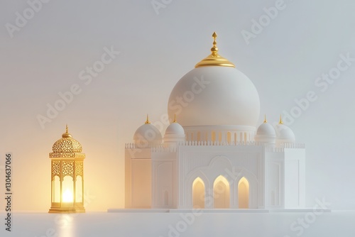lantern, mosque, model, light, glow, warm, elegance, simplicity, minimalism, white, background, clean, aesthetic, design, architecture, islamic, art, culture, tradition, beauty, detail, symmetry, craftsmanship, still, life, composition, photo, style, modern, classic, presentation