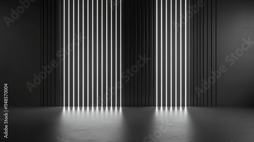 A minimalist space featuring vertical light, background, elegant strips against a dark background.