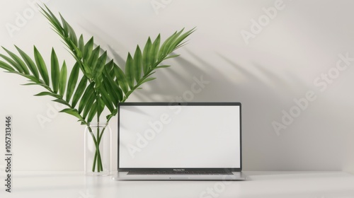 laptop, plant, workspace, minimalist, desk, organisation, simplicity, calmness, zen, greenery, inspiration, layout, furniture, chic, remote, creativity, screen, unemployment, calm, elegant, productivity, office, ambience, foliage, interior, work, blank, home, technology, light, tropical, arrangement, vase, space, modern, digital, clean, style, design, decor, aesthetic, equipment, beauty, nature, bright, environment, natural, fresh