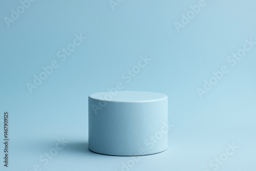 A minimalistic blue cylindrical podium set against a soft blue background, perfect for product displays or artistic presentations