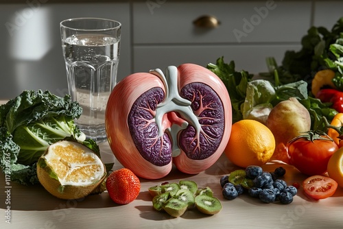 lung, fruit, vegetable, health, anatomy, model, nourishment, diet, water, glasses, kale, lemon, strawberry, pear, tomatoes, blueberry, pepper, kiwi, cabbage, orange, apple, beet, spinach, carrot, avocado, celery, radish, grape, broccoli, courgette, herb, fiber, vitamin, mineral, antioxidant, wellness, food, organic, fresh, colourful, balance, lifestyle, education, biology, science, immune, respiratory, environment, dietetic