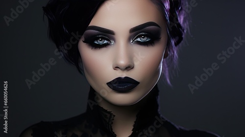 purple, black, make-up, model, deep, powder, beauty, eye, lip, face, fashion, cosmetic, trend, style, pigment, shade, hue, edgy, dark, mysterious, dramatic, romantic, blend, vamp, sharpened, contour, elegance, contrast, moody, allure, aesthetic