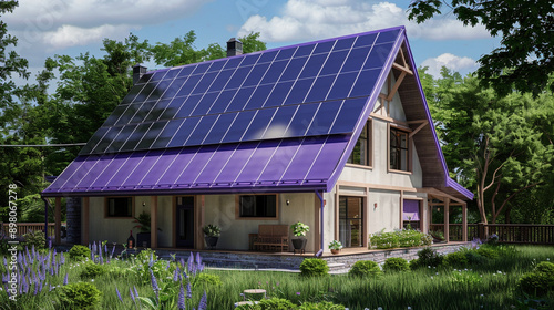 A modern house equipped with solar panels on the roof, showcasing sustainable living and renewable energy integration in residential architecture.