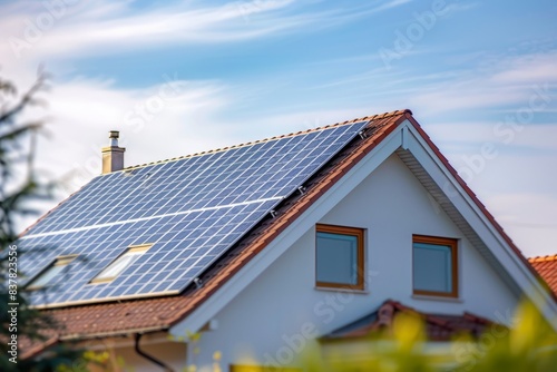 A modern house with solar panels installed on the roof, showcasing the transition to sustainable living and energy independence