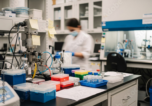 laboratory, laboratory, equipment, machine, technology, science, research, test, tube, rack, bottle, shelf, bench, computer, chemistry, biology, medicals, health care, pharmaceutical, analysis, experiment, study, development, innovation, discovery, stem, industry, clinical, genetic, microbiology, quality, control, work, job, occupation, indoor, day, no people, nobody, background, modern, clean, professional, workplace, bright, window, woman, scientist, blurred
