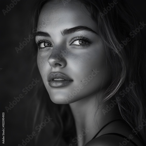 portrait, beauty, woman, face, expression, photo, monochrome, artistic, emotion, gaze, skin, light, shadow, elegance, youth, model, feature, closeup, natural, aesthetic, serene, delicate, charme, style, intensity, depth, contrast, allure, striking, captivating, timeless, soulful, stunning, visual, art, creative, inspiration, personality, character, mood, simplicity, grace, detail, composition, intimate