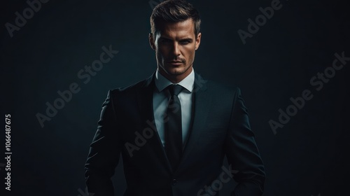 A moody studio portrait of a man in a dark suit, creating a sense of sophistication and intensity