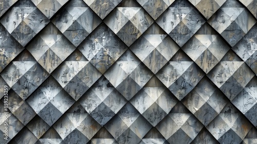 A mosaic made of small diamondshaped tiles forming a repeating pattern with a 3D effect.