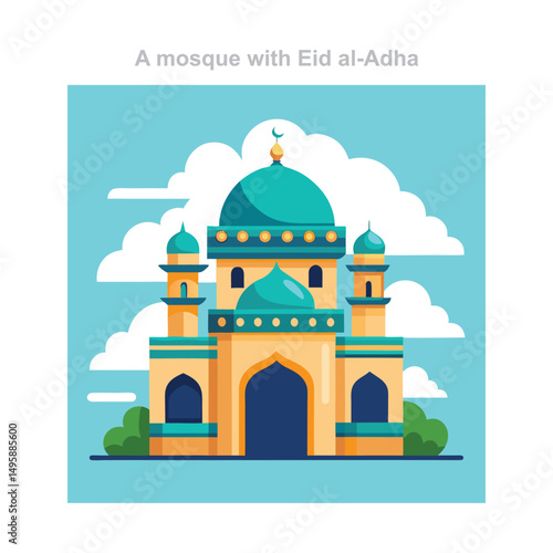 A mosque celebrating Eid al-Adha with a sky of clouds.