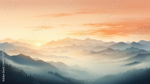 mountain, mountain, hill, sky, nature, fog, morning, sunrise, sunset, mist, landscape, scenery, travel, dawn, peak, environment, blue, forest, silhouette, horizontal, sunlight, view, summer, vale, background, outdoors, beautiful, light, range, panorama, cloud, tour tourism, tree, high, land, illustration, season, hiking, photo, green, horizon, illustration, wallpaper, abstract, colourful, watercolor, warm, vibrant