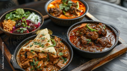 A mouthwatering selection of lamb, mutton, and goat curry served with piping hot parathas