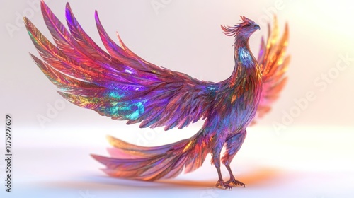 iridescent, bird, wing, phoenix, mythical, creature, feather, colourful, white, background, pink, purple, blue, green, yellow, orange, red, shine, gloss, light, shadow, abstract, art, three-dimensional, render, digital, illustration, fantasy, animal, beautiful, majestic, graceful, elegant, powerful, legend, rebirth, hope, symbol, design, artwork, graphic, graphic