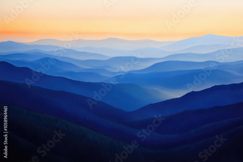 mountain, range, layer, layer, layered, blue, dusk, evening, horizon, sky, sunset, twilight, light, shadow, ridge, peak, crest, hill, hill, vale, vale, landscape, nature, scenery, vista, view, panoramic, abstract, artwork, painting, art, digital, illustration, graphic, brush