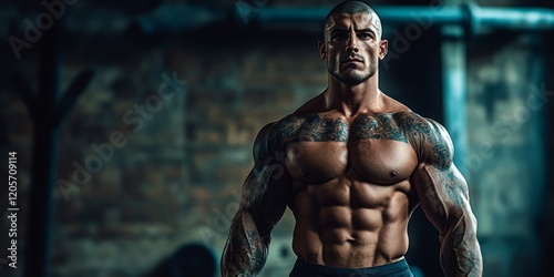 A muscular man in a gym with a kettlebell, embodying strength, fitness, and determination. Ideal for gym promotions, fitness inspiration, and strength training themes.