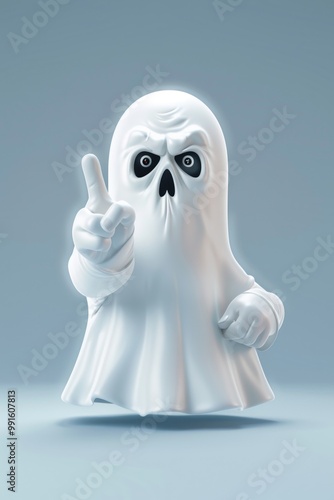 A mysterious white ghost gives the finger, standing out against a bright blue background