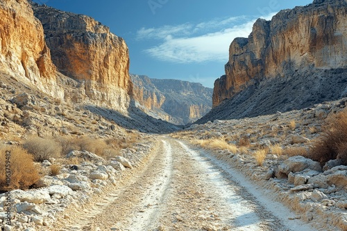 A Narrow Dirt Road Through a Rugged Canyon Landscape
