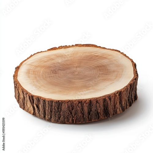 A natural wooden slice showcasing the unique texture and patterns of a tree trunk, highlighting the beauty of organic materials.