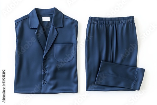 pajama, navy blue, silk, set, white background, luxurious, smooth, soft, fabric, textile, nightwear, clothing, fashion, comfortable, stylish, modern, versatile, menswear, unisex, outfit, garment, trendy, new, relaxed, clothes rack, essential, neat, clean, classic, elegant, cosy, satin, polished, shiny, sophisticated, folded, presentation, display, product, bedtime, luxury, sleep