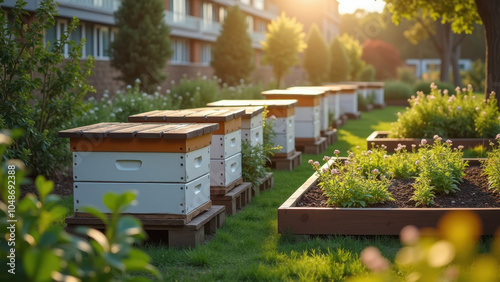 apiculture, apiary, gardening, sunset, flower, sunlight, pollinator, agriculture, environment, nature, sunshine, daybreak, sunrise