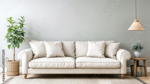 sofa, interior, living, room, scandinavian, copy space, white, design, minimalist, cosy, potted, plant, wooden, furniture, warm, lighting, comfort, elegance, home, decor, cushion, side, table, pendant, light, wall, flooring, modern, simplicity, style, clean, couch, background, apartment, house, floor, contemporary, indoor, blank, lounge, luxury, illustration, bright, grey, comfortable, parquet, concept, wood, realistic, elegant