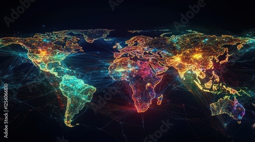 A neon cyber-grid spanning across continents, pulsating with vibrant data flow, forming a visual representation of global internet connections.