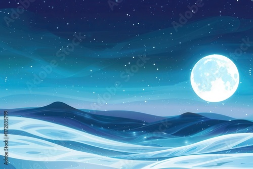 night, sky, full, moon, starry, star, dark, blue, white, glow, aglow, bright, hill, hill, wavy, landscape, scene, abstract, art, digital, illustration, background, texture, pattern, graphic, design, nature, celestial, space, cosmic, dreamy, magical, aethereal, serene, peaceful, calm, soft, gentle, moonlight, cloud, cloud, light, fantasy, universe, black, planet, star, astronomy