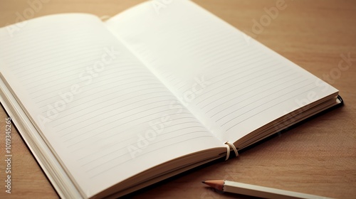 a notebook, page and some blank pages inside stock image