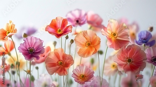 a painting of fragrant, colorful flowers on a white background, highlighting their vivid blossoms and aromatic charm for a relaxed poster