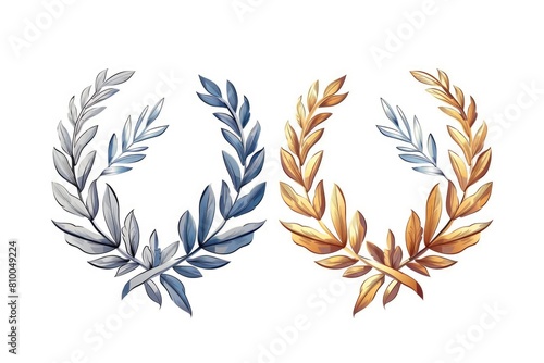 A pair of laurel wreaths on a plain white background. Suitable for awards or achievements