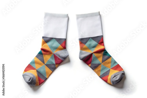 sock, pair, geometric, pattern, design, colourful, triangle, fashion, style, clothing, accessory, ankle, cotton, textile, fabric, wear, toe, heel, knit up, warm, casual attire, modern, trendy, unique, creative, abstract, decorative, vibrant, stylish, comfortable, soft, gift, present, holiday, christmas, birthday, novelty, fun, playful, expression