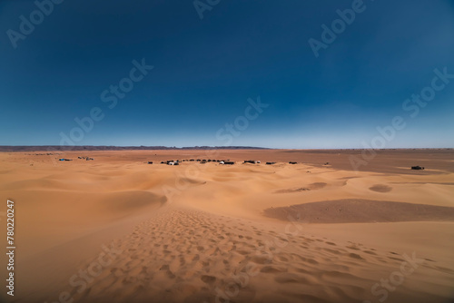 A panoramic sand dune near the desert camp at Mhamid el Ghizlane in Morocco
