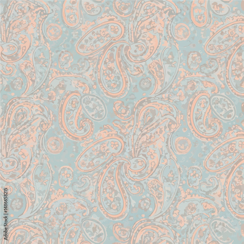paisley, pattern, texture, pastel, peach, beige, light blue, seamless, background, fabric, textile, design, vintage, retro, elegant, intricate, ornamental, ornate, classic