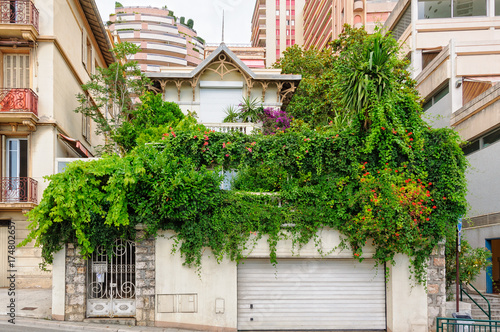 patch, green, oasis, plant, concrete, jungle, monaco, garage, garden, gate, hill