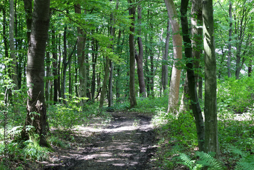 A path carved through the forest invites you deep into the thicket, where freshness and tranquility reign. Sunlight penetrates the dense tree crowns, creating a play of light and shadow on the ground