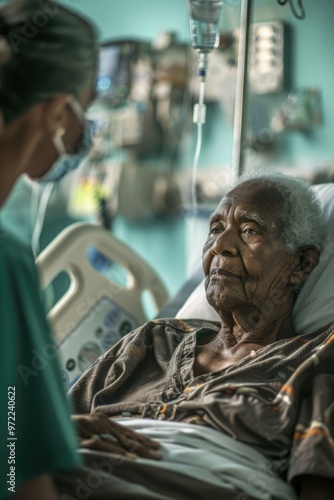 woman, hospital, bed, nurse, patient, conversation, health care, medicals, room, doctor, bedside, staff, men at work, talking, negotiate, consultation