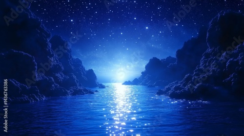 serene, nightscape, pebble, beach, sky, illustration, sea, ocean, water, landscape, nature, cloud, cloud, horizon, night, sunset, sun, light, blue, moon, summer, mountain, island, abstract, lake, beauty, travel, beautiful, wave
