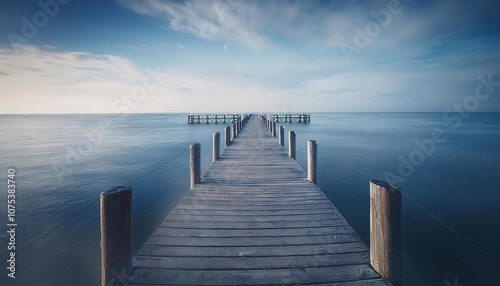 A peaceful wooden Pier Bridge deserted pier stretching out into a calm sea