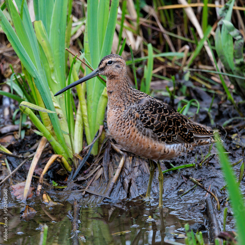A pectoral sandpiper searching for food at Burnaby lake, Canada.