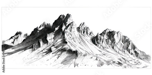 A Pen and Ink Drawing of a Majestic Mountain Range
