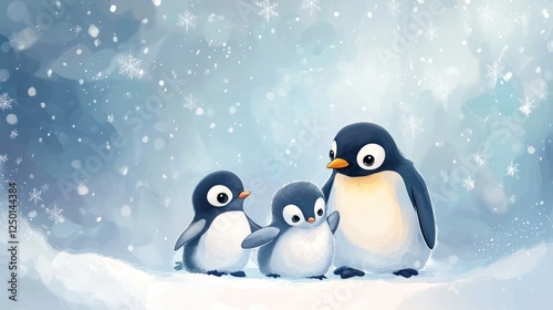 penguin, family, winter, snow, cute, adorable, illustration, animal, wildlife, bird, baby, eltern, cold, ice, glacé, fluffy, charming, sweet, lovely, snowflake, art, digital, painting, drawing, cartoon, graphic, design, nature, scene, background, white, blue, light, soft, peaceful, serene, calm, happy, joyful, holiday, christmas