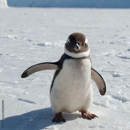 a penguin that is walking in the snow