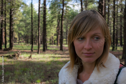 woman, young, pensive, deep, thought, serious, forest, wood, nature, outdoors, female, girl, blond, pretty, attractive, country, thinking, alone, portrait, closeup, thoughtful, meditation, lifestyle