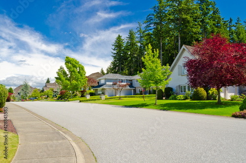 A perfect neighborhood. Houses in suburb at Summer in the north America